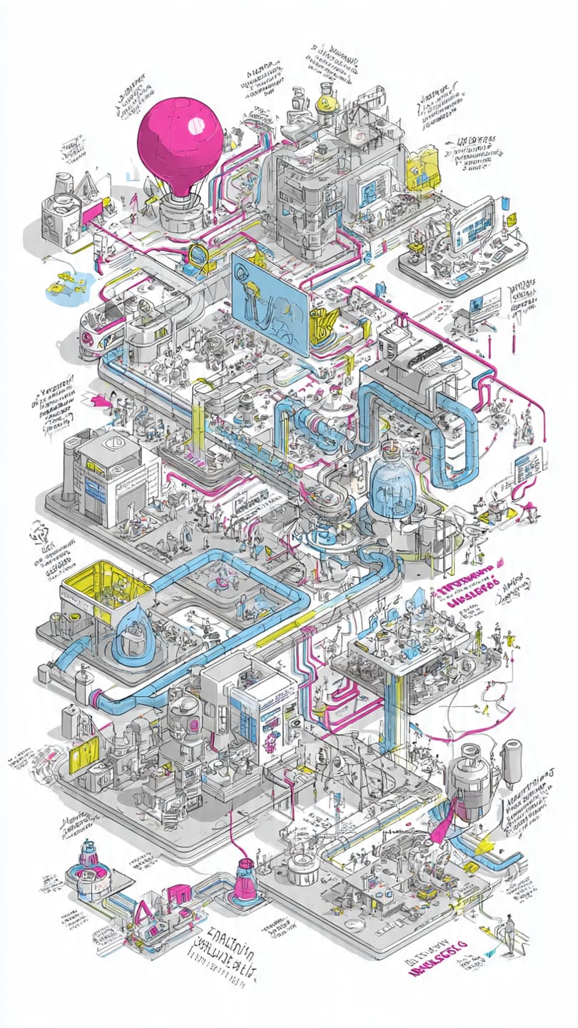 Nano Banana Pro lands with a clear narrative and a consistent sketch style that holds the whole diagram together. The flow is easy to trace and the metaphors stay grounded, which gives the image a coherent rhythm. The tradeoff is that it leans heavily into illustration. There’s less structural precision in the pipeline and more emphasis on storytelling and visual charm. It works well as a concept piece, but it’s not as rigorous as the models that prioritize system logic.
